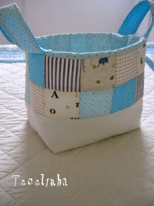 Este modelo aqui com bichos em tecidos coloridos foi para a Gisele e a chegada do Stefano.