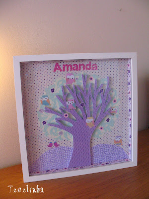 Este modelinho aqui de árvore lilás com corujinhas e flores fiz para sugerir uma opção diferente - e está na pronta entrega da loja, basta modificar o nome da bebê!