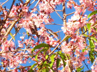Outra tarde dessas tentei tirar algumas fotos dos mini beija-flores que circundavam esta cerejeira, bem pertinho da janela do meu quarto.